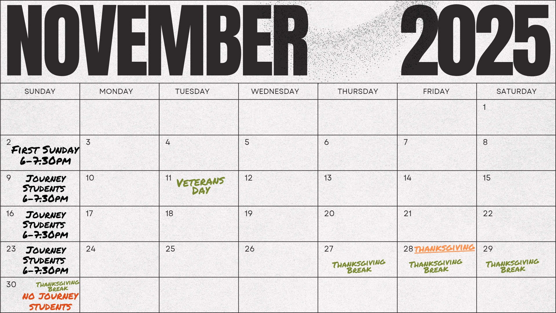 Our Journey Students (6th-12th grade) meet Sunday nights during the school year in our student space. Keep up to date with any special events during the summer by subscribing to our email list.